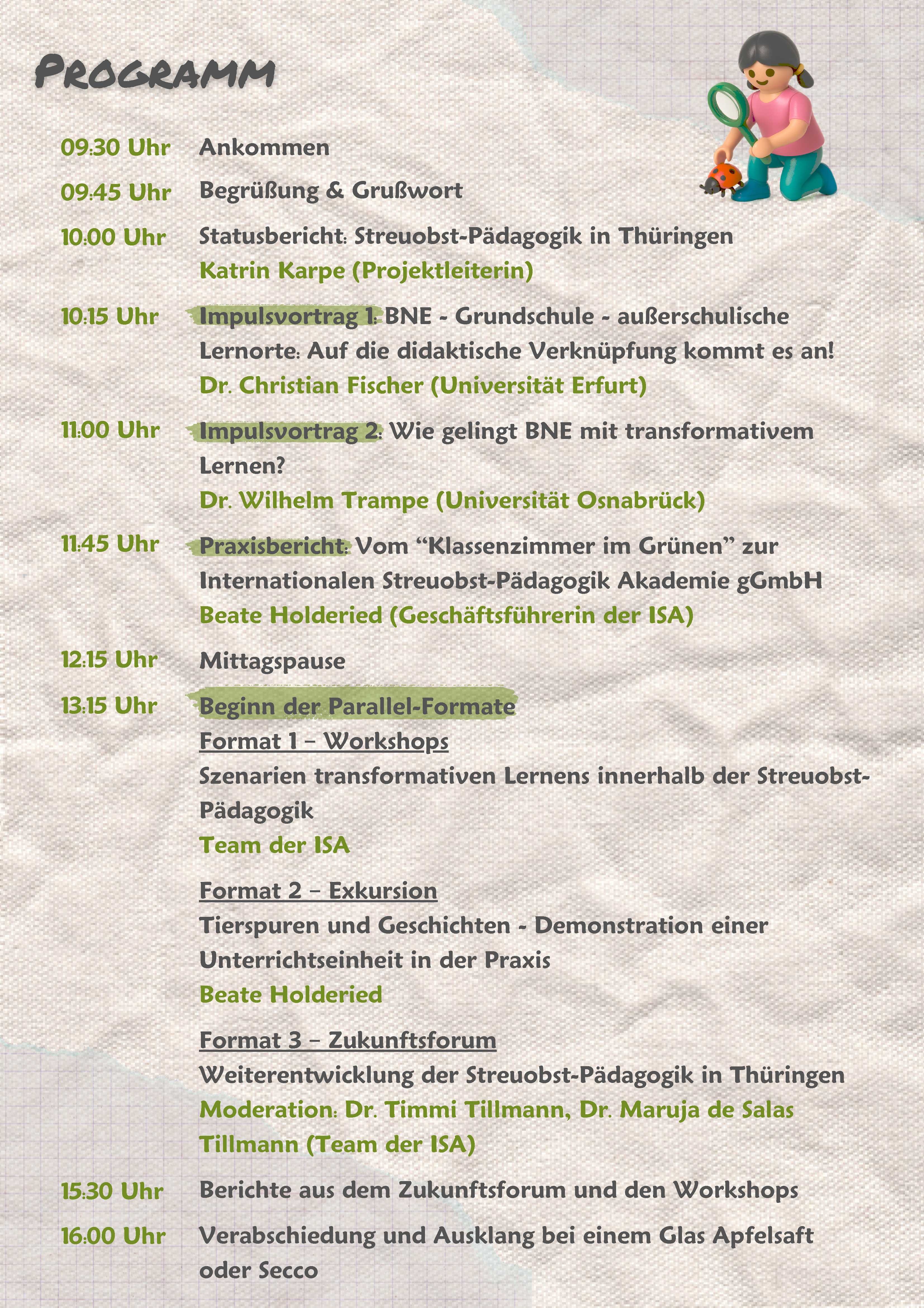 Der Ilmtal Streuobst e.V. bietet in Kooperation mit dem Landschaftspflegeverband Mittelthüringen e.V. und der Internationalen Streuobst-Pädagogik Akademie die Ausbildung zur/zum zertifizierten Streuobst-Pädagogin/Streuobst-Pädagogen an.